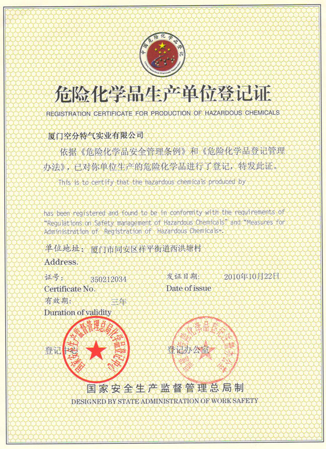 危險化學(xué)品生產(chǎn)單位登記證(正本)